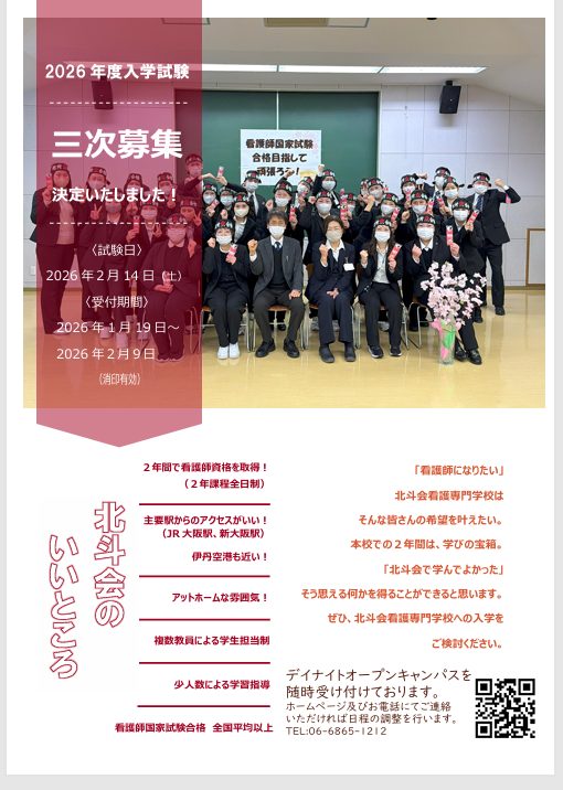 2026年度二次募集の入学試験は本日終了いたしましたが、入学定員を満たしておりませんので、三次募集を行います。